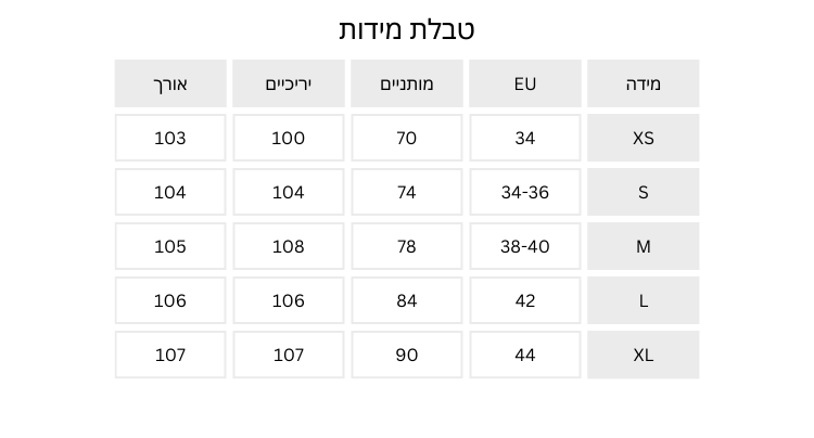 מומלץ לקחת מידה אחת פחות מהמידה שלכם.