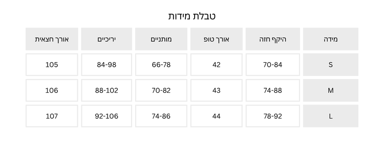 בעקבות גזרות מיוחדות לפריטים מסויימים הוספנו למספר פריטים המלצות בבחירת המידה.